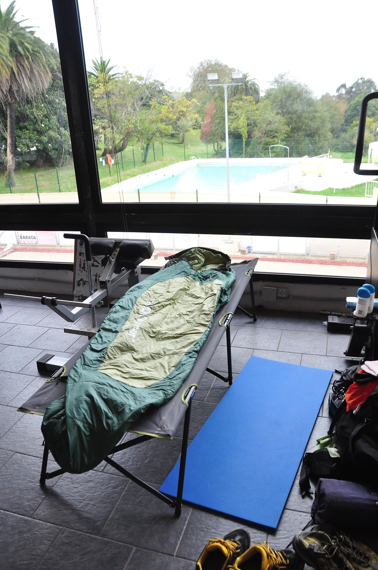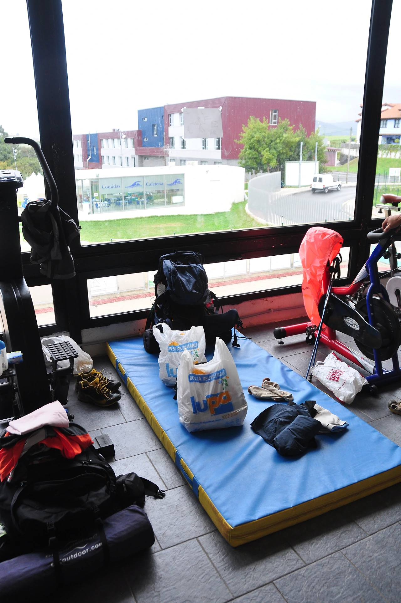 마을에 다다르자 또다시 습관적으로 알베르게를 찾아다녔다. 이곳은 특이하게도 마을체육관을 알베르게를 겸하여 사용한다. 그러다 보니 별도의 자리가 없어 매트리스 또는 간이침대를 선택하여 자기가 아무대나 펼치면 숙소가 된다.