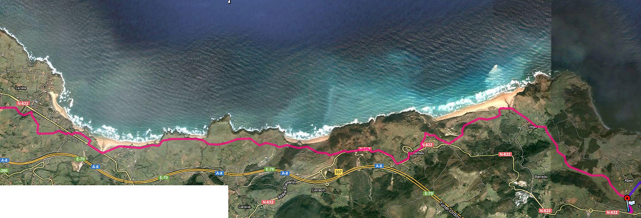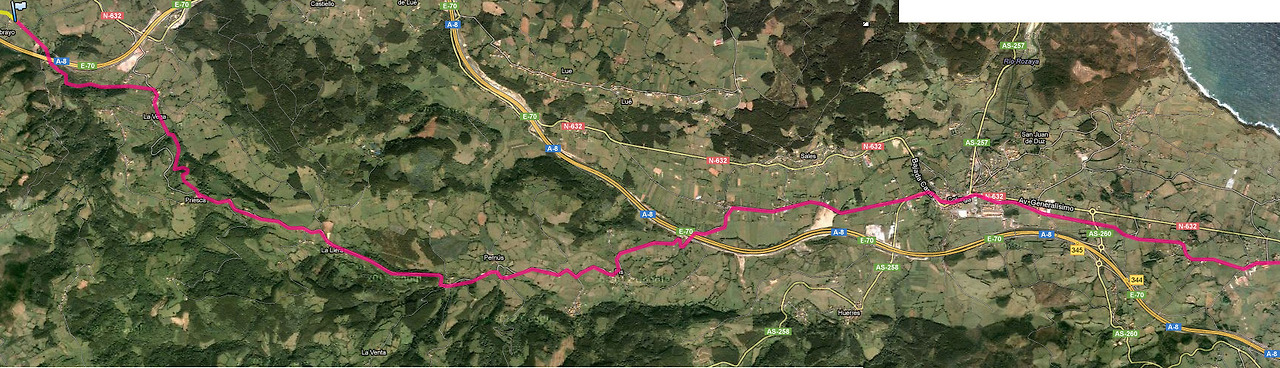 주요지점 San Esteban (San Pedro de leces) - Berbes - La Espasa - Colunga - Pernus - Sebrayo