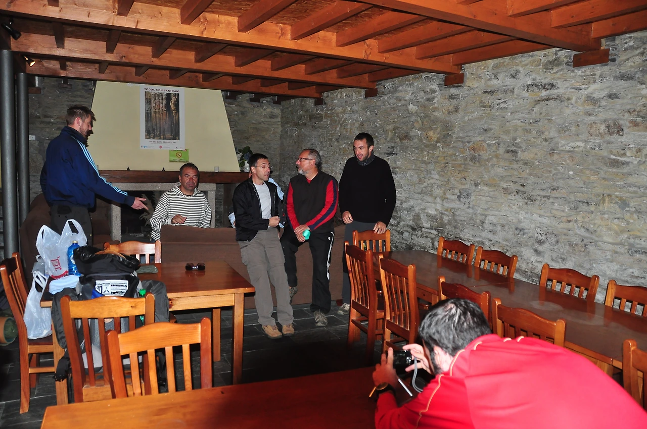 그래서 출발하기 전에 다같이 기념사진을 찍었다. 어두운 알베르게 불빛아래 며칠을 동행했던 친구이자 가족같았던 우리만에 추억을 남겼다.