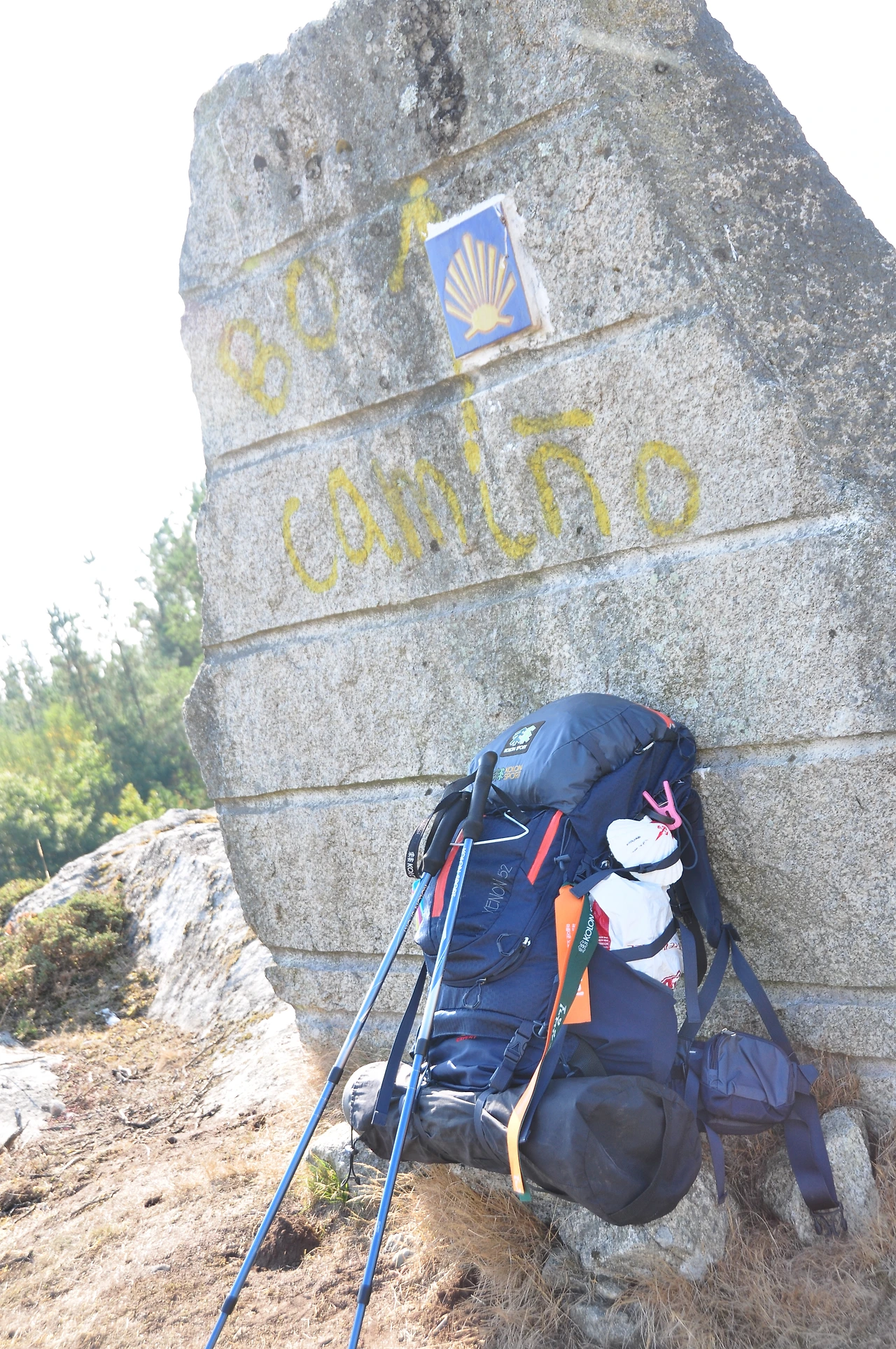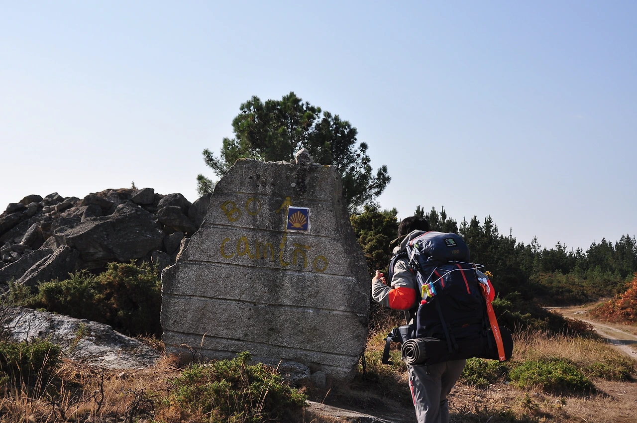 가끔은 왠지 멋있어 보이는 장소도 나타난다. 특히 바위나 건물옆에 순례길을 상징하는 표시나 노란색 화살표가 있다면 말이다. 그 앞에서 쉬어가는 것도 멋있어 보이게 된다. 내가 순례길을 걷고 있기 때문에...