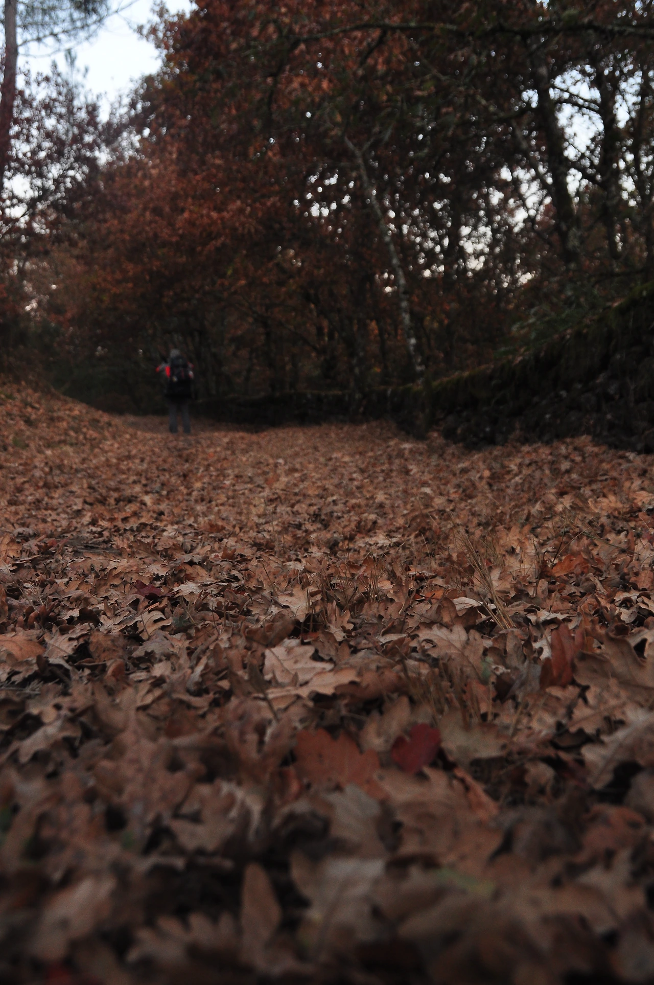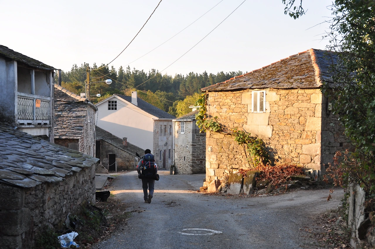 아직은 어두웠지만 먼 길을 떠나야하기 때문에 마지막 인사를 하고 알베르게를 나섰다. 완연한 가을 속 낙엽이 가득한 숲길이 눈앞에 나타났다. 두툼한 낙엽길이지만 불편하지는 않다. 양탄자길처럼 푹신할 뿐이다. 그리고 갈리시아 지방에 들어서면서 다른 지방과 달라진 것이 있다면 더욱 시골같은 풍경과 낮은 경사의 오르막과 내리막길, 그리고 독특한 창고가 집집마다 있다는 것이다.