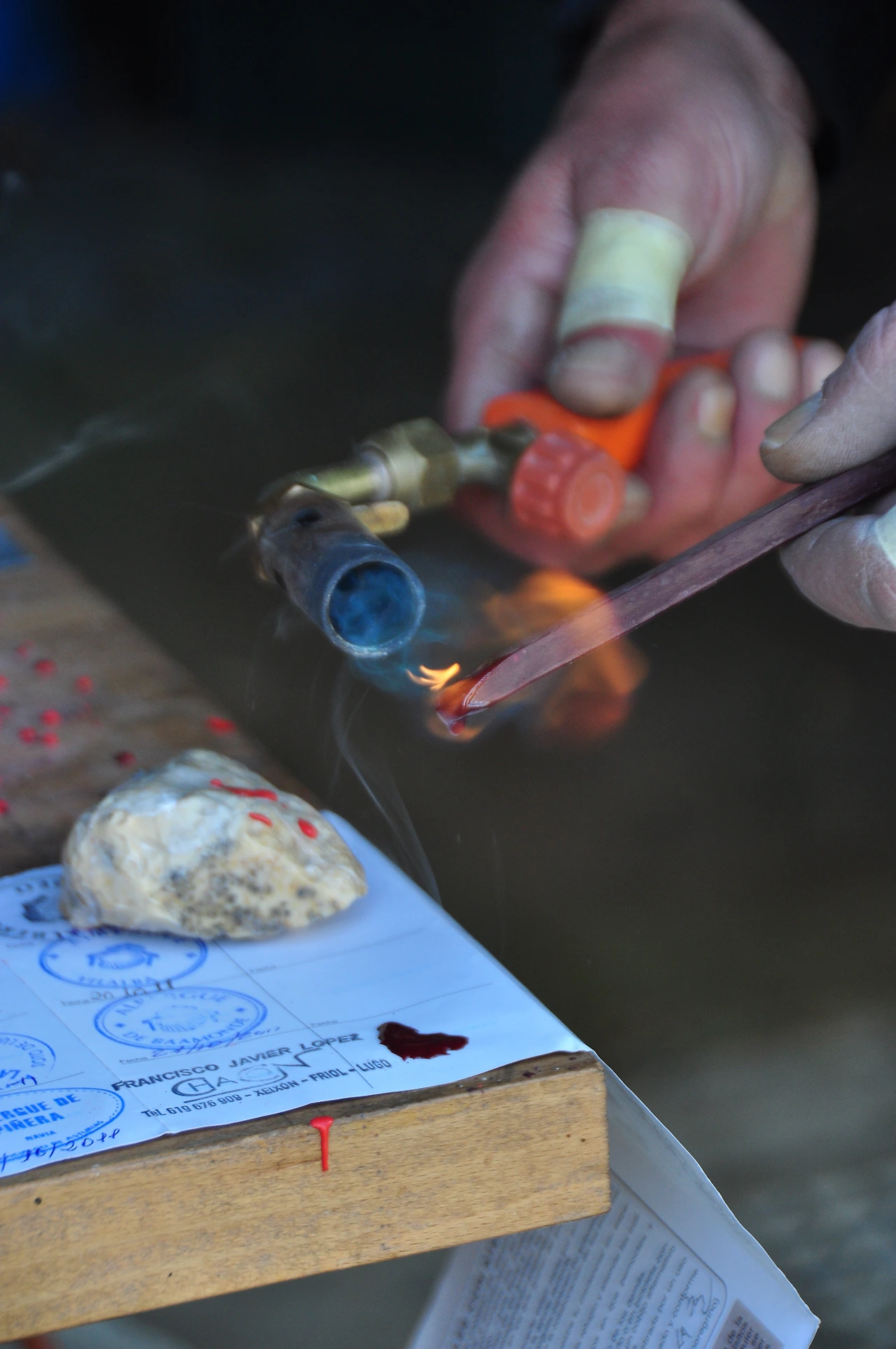 그리고 순례자를 위해 Sello를 찍어주겠단다. 왁스를 녹여 크레덴시알에 붓고 그 위에 도장을 찍어주는 방식이였다. 새롭고 특이한 스탬프이기에 기다리는 수고로움보다 보고 즐기는 시간으로 내차례가 되기를 기다렸다.