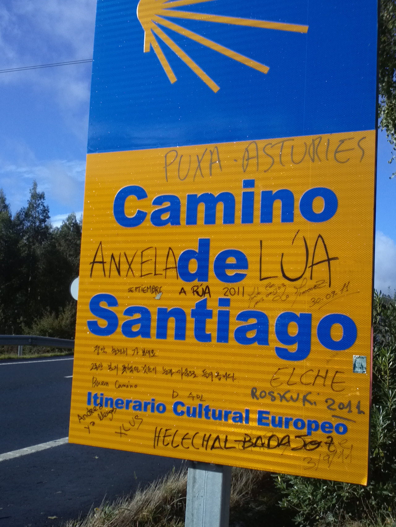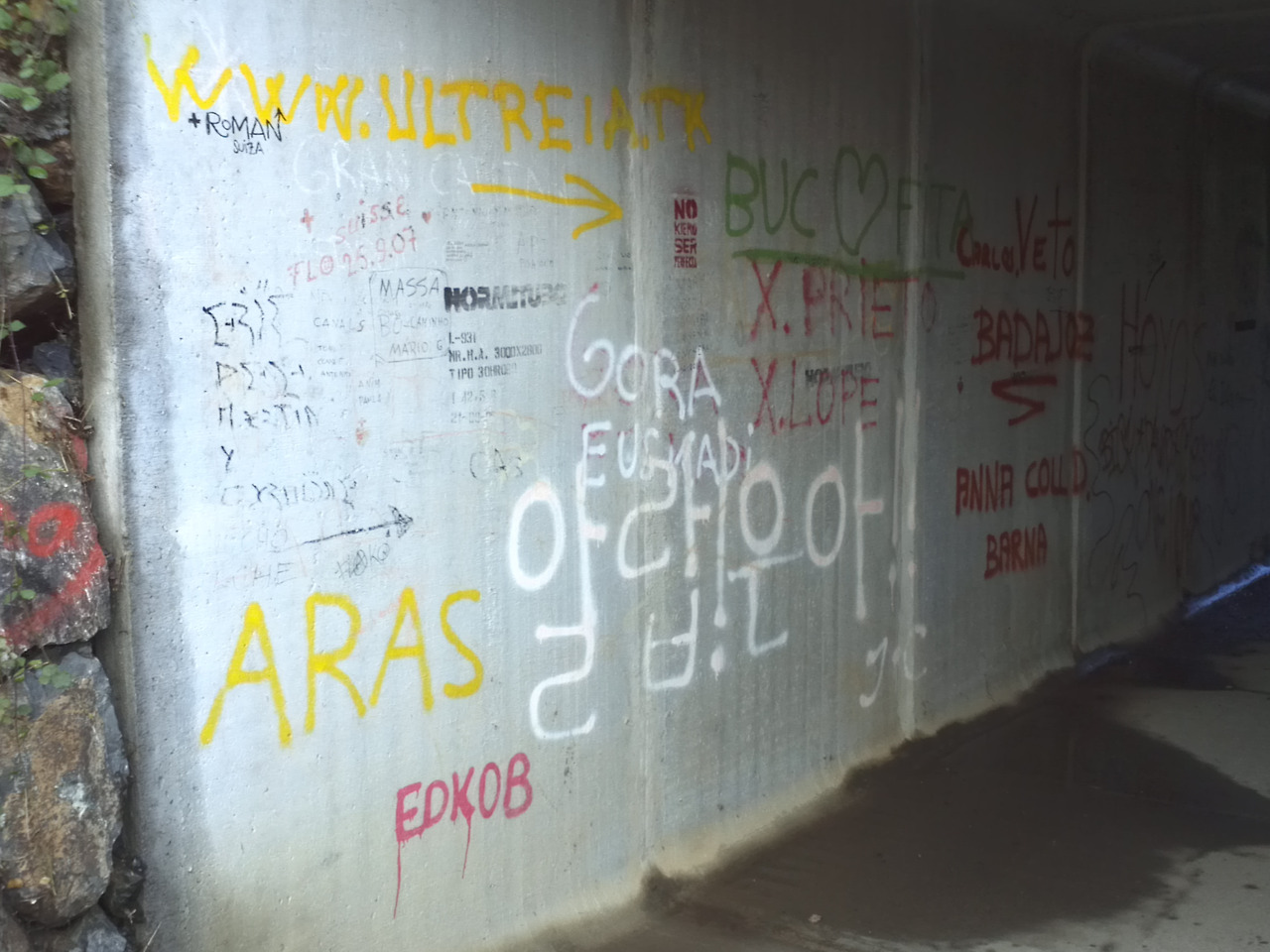 Arzua를 지나면서 순례길 이정표가 더욱 많이 보였다. 특이한것은 표시판과 주변 벽이던, 도로밑 터널이던 다양한 언어로된 낙서가 가득하다는 것이다. 대부분 순례길과 관련된 말인데 간혹 한국어로된 말도 보인다. 반갑기도 하고 나도 쓰고 가볼까 하는 생각도 들었다.