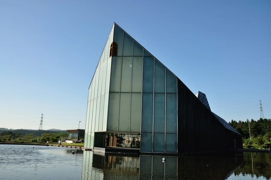 건물 주변에 얕은 연못을 만들어 놓아 바다에 방주가 떠있는 듯한 형상을 하고 있다.