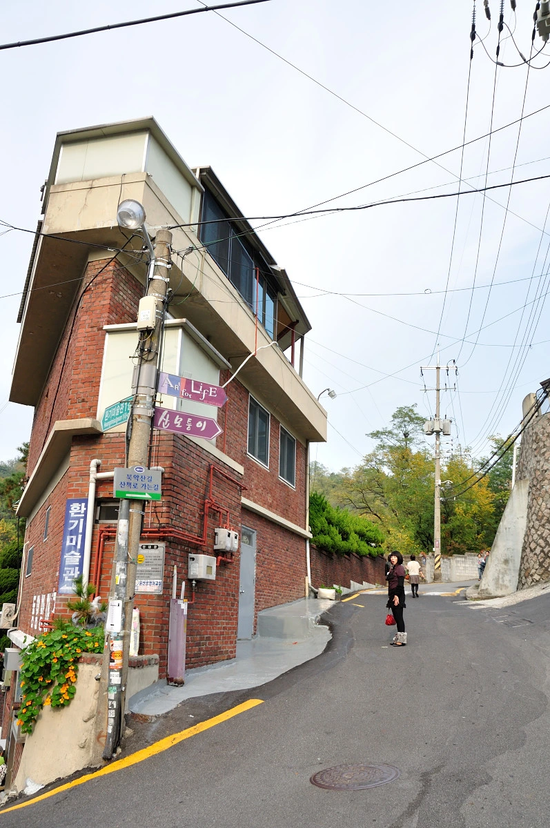 오르막길 끝까지 가보았다. 언덕배기 갈림길에서 오른쪽으로 가면 북악산 스카이웨이와 연결되고 왼쪽 아래로 내려가면 부암동 주택단지이다. 주택단지를 따라 내려가면 백사실계곡도 만날 수 있다고 하였는데, 도통 찾을 길이 없었다. 지금이야 골목 끝자락 샛길옆에 이정표가 있어 찾기 쉬었지만 내가 처음 찾아가던 시기에는 이정표가 없었다. 그저 눈으로 찾아야만 했다. 주차된 차때문에 주택 사이에 있는 백사실가는 샛길을 볼 수 없었기 때문이다.