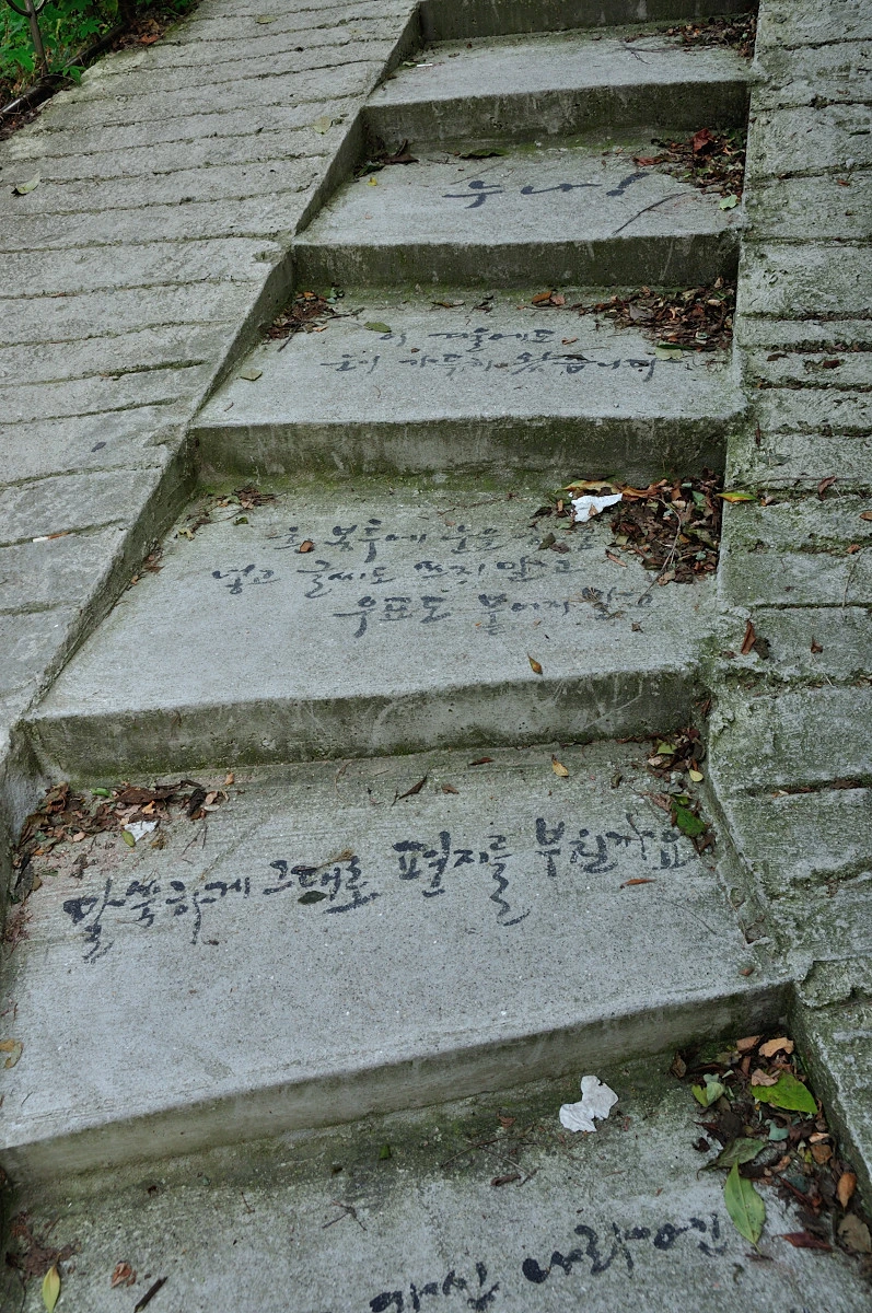 그리고 부암동 삼거리로 내려가는 낮은 턱이 인상적인 계단을 내려왔다. 지금은 지워져서 잘 보이지 않지만 여기에는 윤동주의 싯구가 쓰여져 있었다.