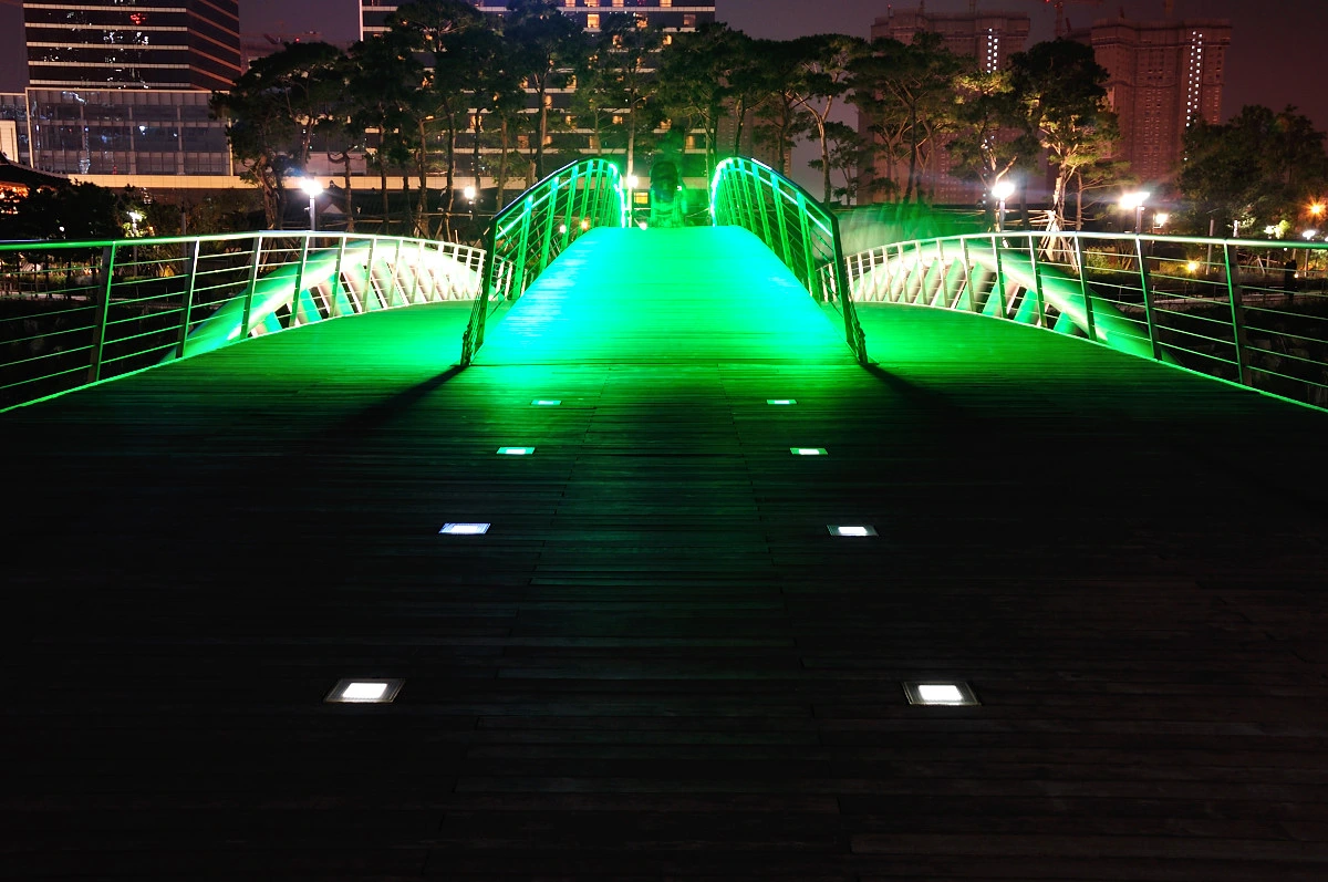 호수에 떠있는 유람선과 보트에도 불빛이 보인다. 그리고 호수를 가로지르는 다리에도 녹색의 불빛으로 색감의 풍성함을 더해 준다.