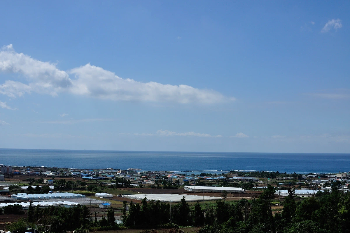 모슬봉 정상에 다다르니 다시 한 번 뒤돌아 보았다. 내가 걸어왔던 길과 포구가 한눈에 펼쳐진다. 거기다가 맑은 날씨로 인해 넓적한 팬케이크 같은 가파도와 마라도 바다위에 둥둥 떠있는 풍경까지 보였다. 낮은 모슬포에서는 볼 수 없었던 풍경... 높은 곳에 올라서야만 제주 서쪽의 풍경을 360도 빙돌아서서 볼 수 있었다.