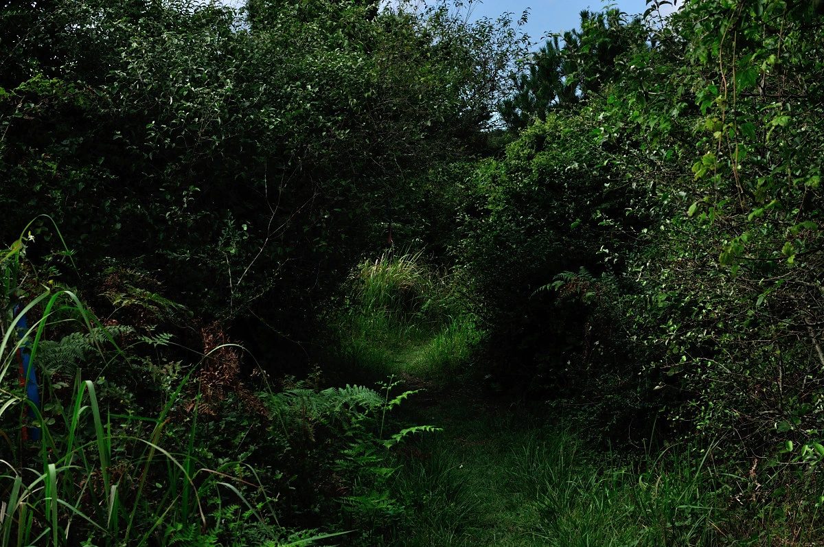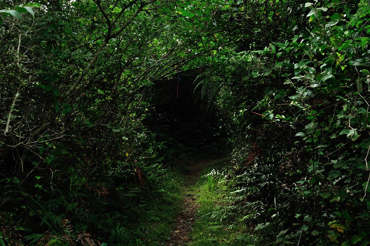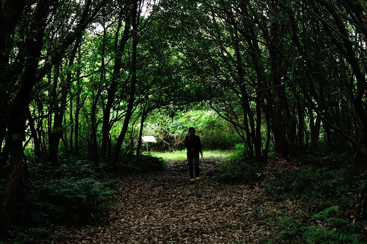 그 사이에 좁은 오솔길이 펼쳐져 있다. 빽빽하게 구성된 나무들 때문에 하늘은 잘 보이지 않는다. 그리고 숲터널이라는 말처럼 나뭇가지가 얽혀서 동그란 구멍처럼 길을 내었다. 그리고 그 사이로 숲길을 지나간다.