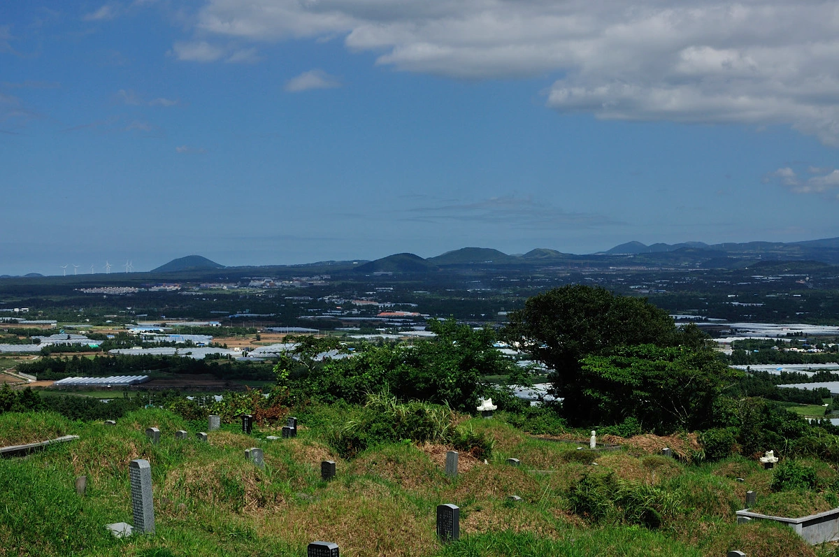 모슬봉에서 내려오는 길은 무덤이 가득한 묘지 사이를 지나간다. 제주 특유의 검은돌로 무덤 주변을 애워싼 무덤 군락 들... 이 모습도 멀리서 보면 독특해 보인다.