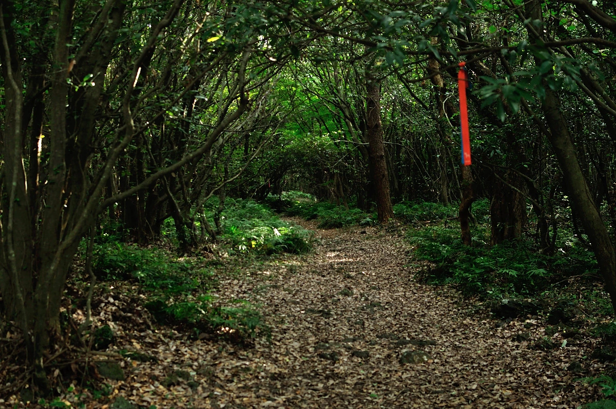 하지만, 곶자왈 구간이 거의 끝나갈 무렵에는 너른 숲길로 바뀐다. 이제서야 한결 편하게 주변의 숲을 둘러보며 찬찬히 걸을 수 있었다. 팽나무 등 제주에서만 볼 수 있는 나무가 가득한 숲이다. 이러한 숲길이라면 하루종일 걷고 싶지만 곶자왈의 평온한 숲길은 짧기만 하다. 게다가 지독한 산모기 때문에 오래 머물 수가 없었다.