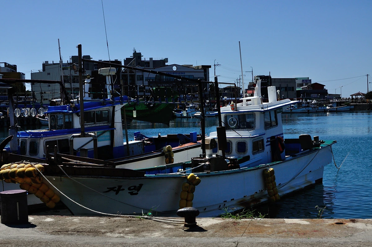 11코스의 시작은 모슬포항의 하모체육공원 앞이다. 모슬포항을 둘러가면서 푸른색하늘과 바다가 겹치는 풍경에 순간 멈칫하고 말았다. 포구의 방파제가 없었다면 어떻게 하늘과 바다를 구분할 수 있을까? 하는 생각이 스친다.