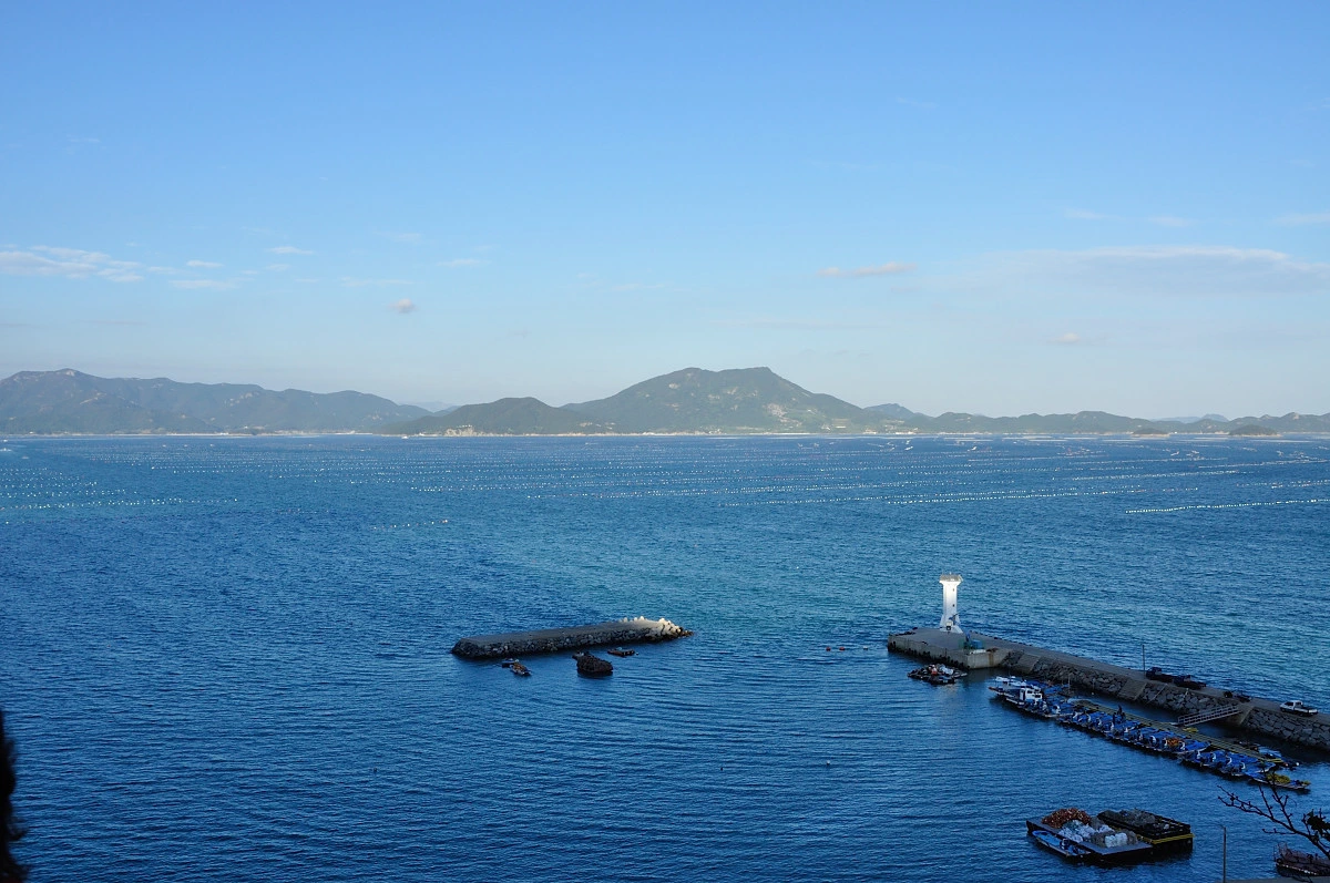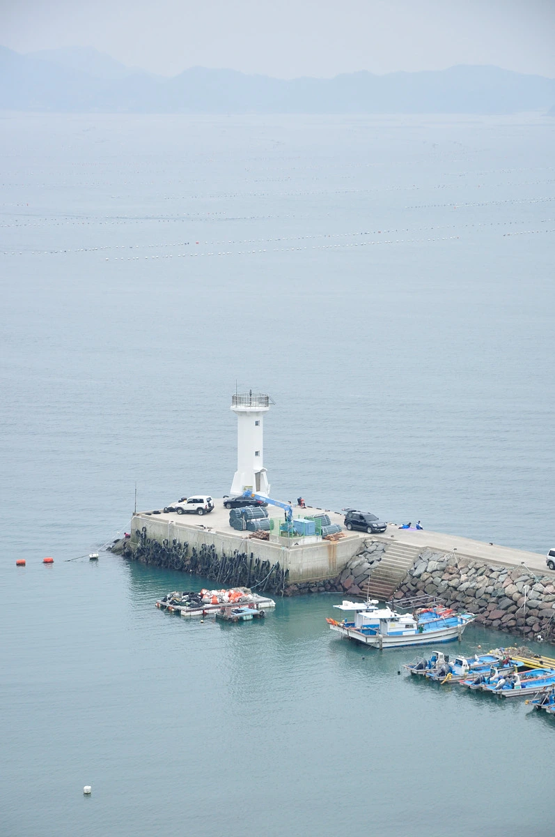 잠깐 차를 세우고 포구를 둘러보니 예상했던 것보다 훨씬 멋드러진다. 아름답다기 보다 정겨운 시골의 어느 포구와 다를바 없지만, 해안에 점점히 섬들이 들어서 있어서 밋밋한 맛이 없고 풍성한 바다의 모습을 갖추고 있다.
