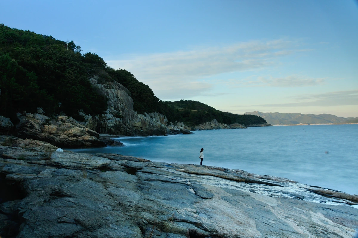 여지 없이 짐을 풀고 삼각대를 받쳐들고 바다풍경을 담아 본다. 부드럽게 펼쳐지는 파도 거품과 바위에서 깨지는 파도소리가 최면을 걸듯 꿈쩍하지 않게 만들어 버린다.