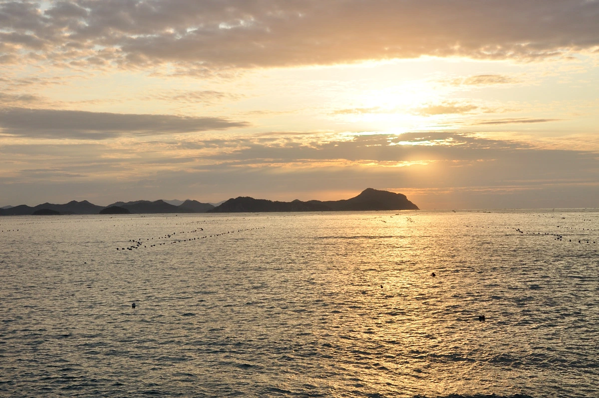 간만에 편하게 잠들었나 싶었는데 아침부터 밖에서 부산스럽게 소리가 들린다. 궁금하여 창밖을 내다보니 일출을 구경하는 사람들이 많이 나와 있다. 동해의 바다처럼 바다위에 해가 뜨지는 않지만 바다 저멀리 섬위에서 해가 뜨는 모습은 볼 수 있었다.