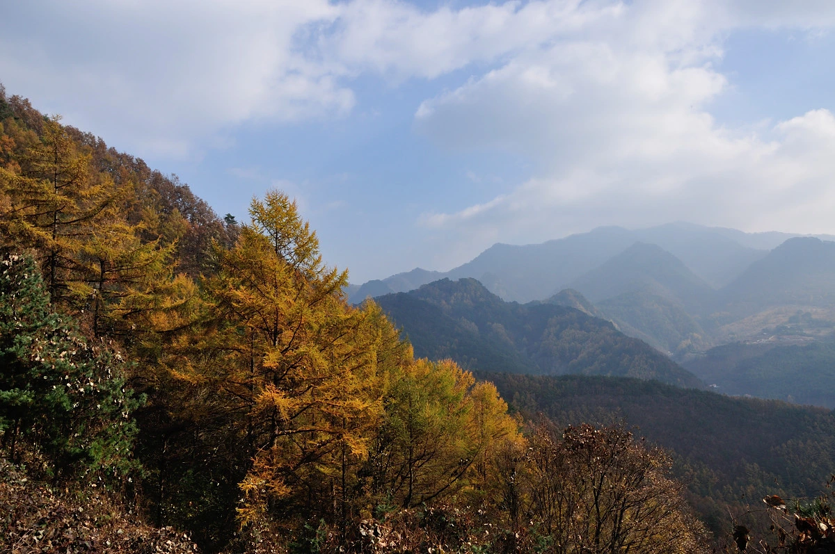 보발재를 지나 소백사자락길에 들어서면 훨씬 아름다운 풍경이 보인다. 낙엽송이 가득하여 산전체가 노랗고 주황빛 색감으로 가득찬 풍경이다.
