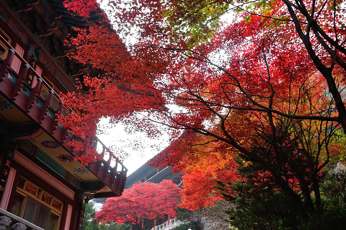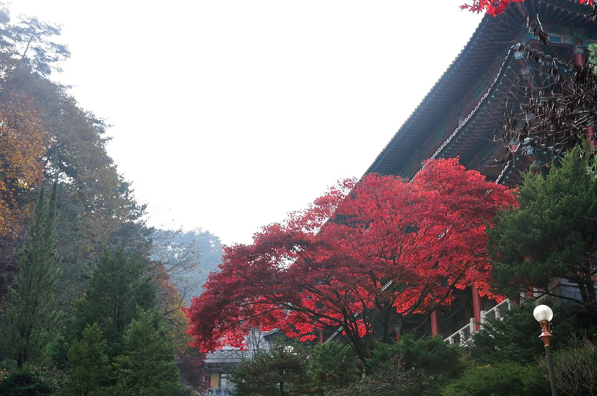 구인사에 다다르기 까지 도로변에 붉은 단풍이 가득하다. 마르지않은 단풍잎에 짙은 빨간색 잉크를 뿌려놓은 듯 진한 색감때문인지 단풍잎의 날카로움이 그대로 전해진다.