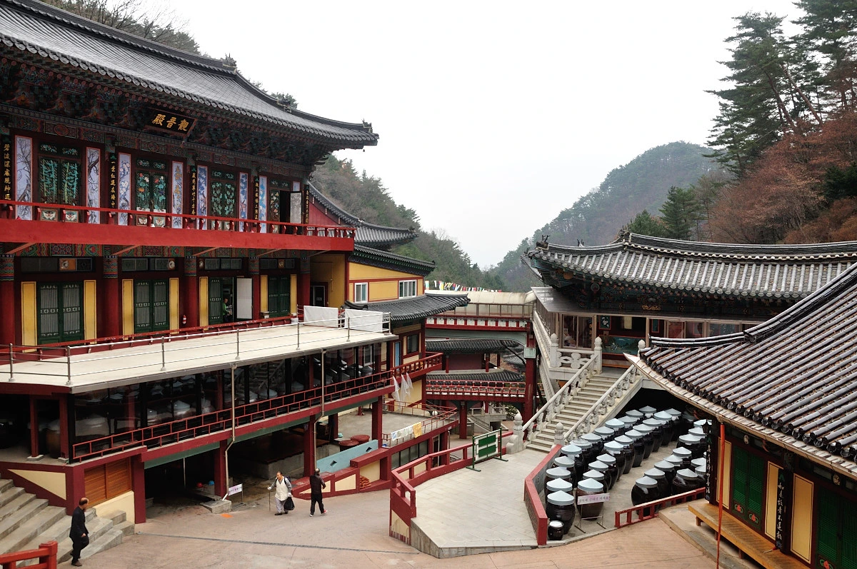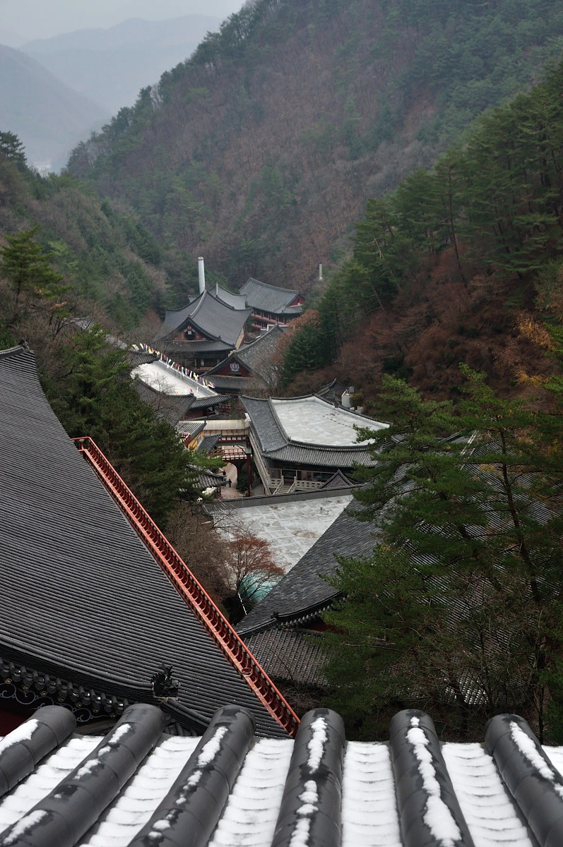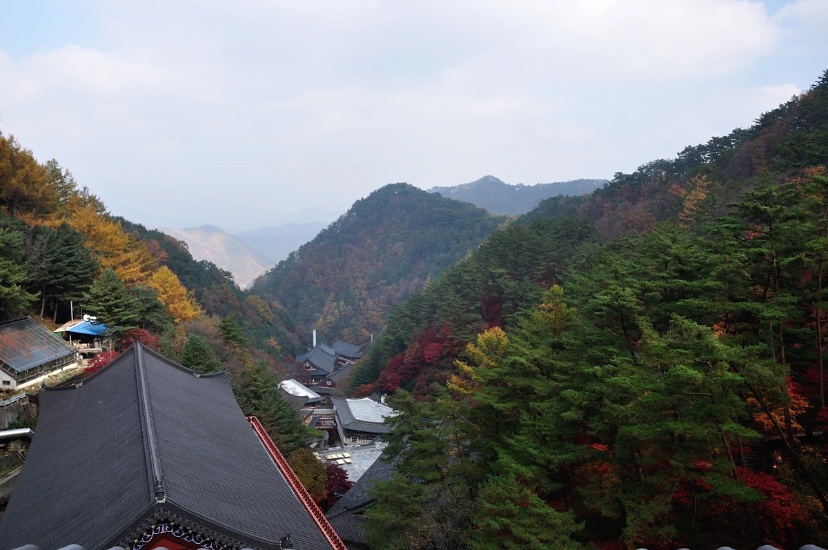 구인사의 아름다움은 계곡 안에 차곡차곡 쌓여져 있는 기와 지붕의 멋이다. 이 모습을 제대로 보려면 가장 높은 곳인 대조사전 앞 마당에서 내려다 보는 것이다.