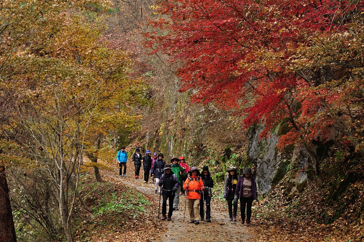노란색과 붉은색으로 물든 나뭇핑이 양옆으로 펼쳐지고 서로 교차하듯 만나면서 하늘까지 가리우니 신선들이 살것만 같은 독특한 세상이 보였다.