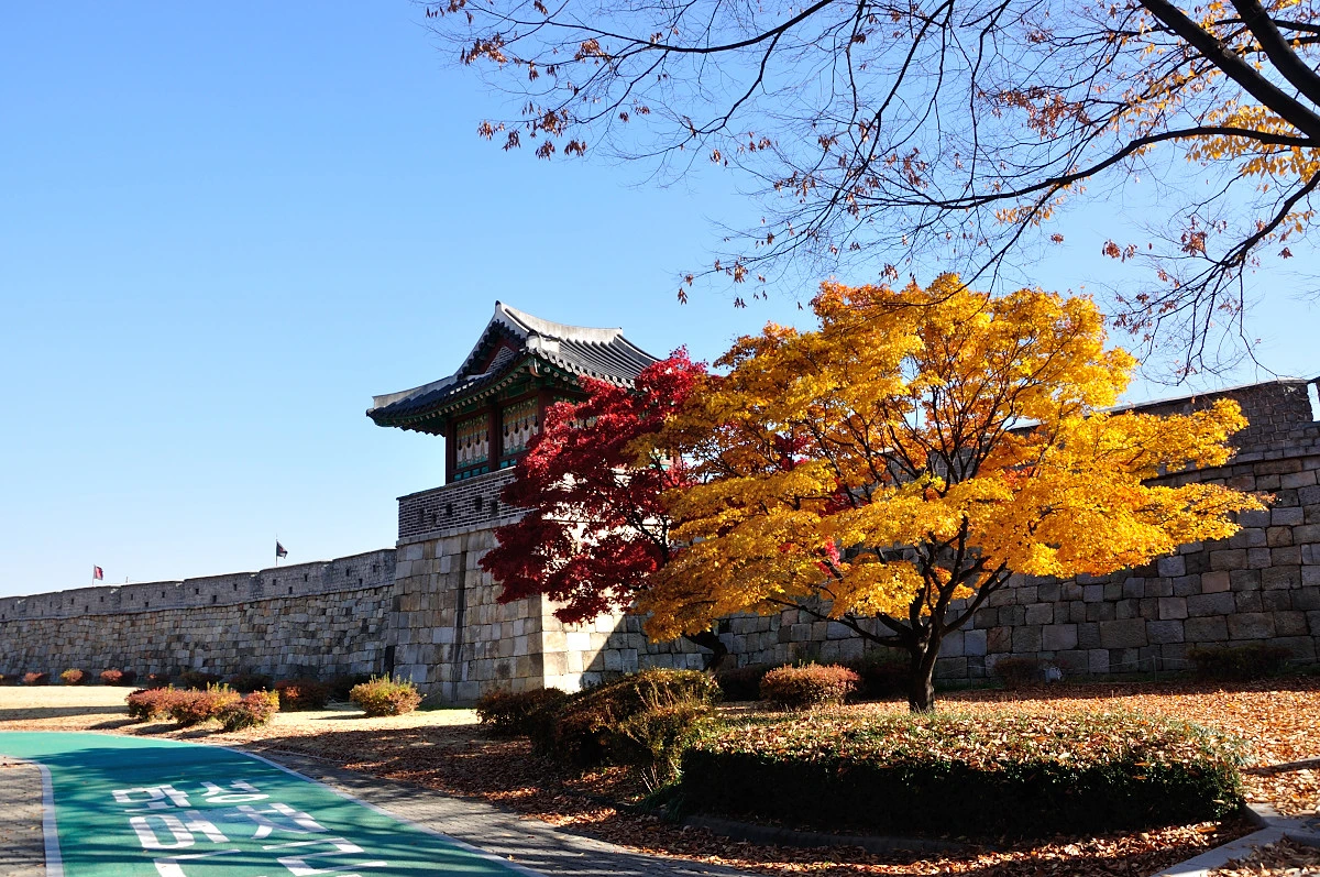 수원화성은 다채로운 모습을 가지고 있다. 벽돌로 만들어진 성이다 보니 기존에 석성과는 다른 모양새를 가진다. 부드러운 곡선이 있고, 검정색 벽돌이 보여주는 웅장함과 고급스런 이미지까지 더한 아름다운 성이다.
