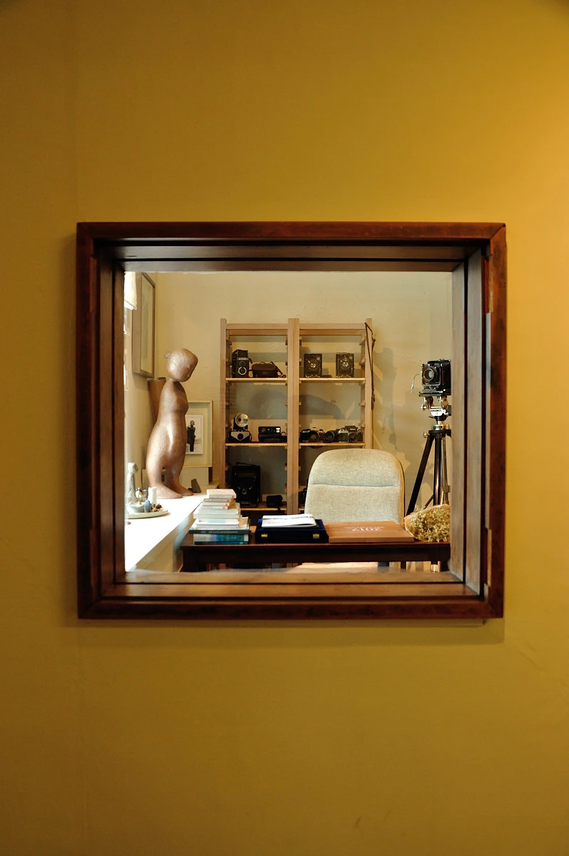전시관을 둘러보고 마지막 정문을 나서기 전에 오른쪽에 작은 창이 보인다. 얼핏보면 사진이 담긴 액자처럼 보이지만 실제로는 작가가 사용하였던 서재와 카메라 라고 한다. 이마저 액자처럼 보이는 틀안에서 들여다 보니 사물이 있는 사진처럼 보인다.