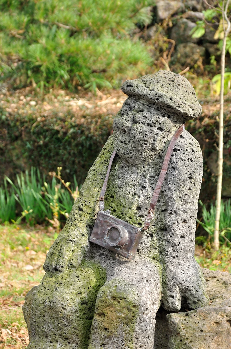 앞마당에 들어서자 모자쓴 돌하루방이 보인다. 카메라를 걸쳐맨 모습이 어쩌면 김영갑 작가의 모습이 아닐까하는 생각이 들었다.