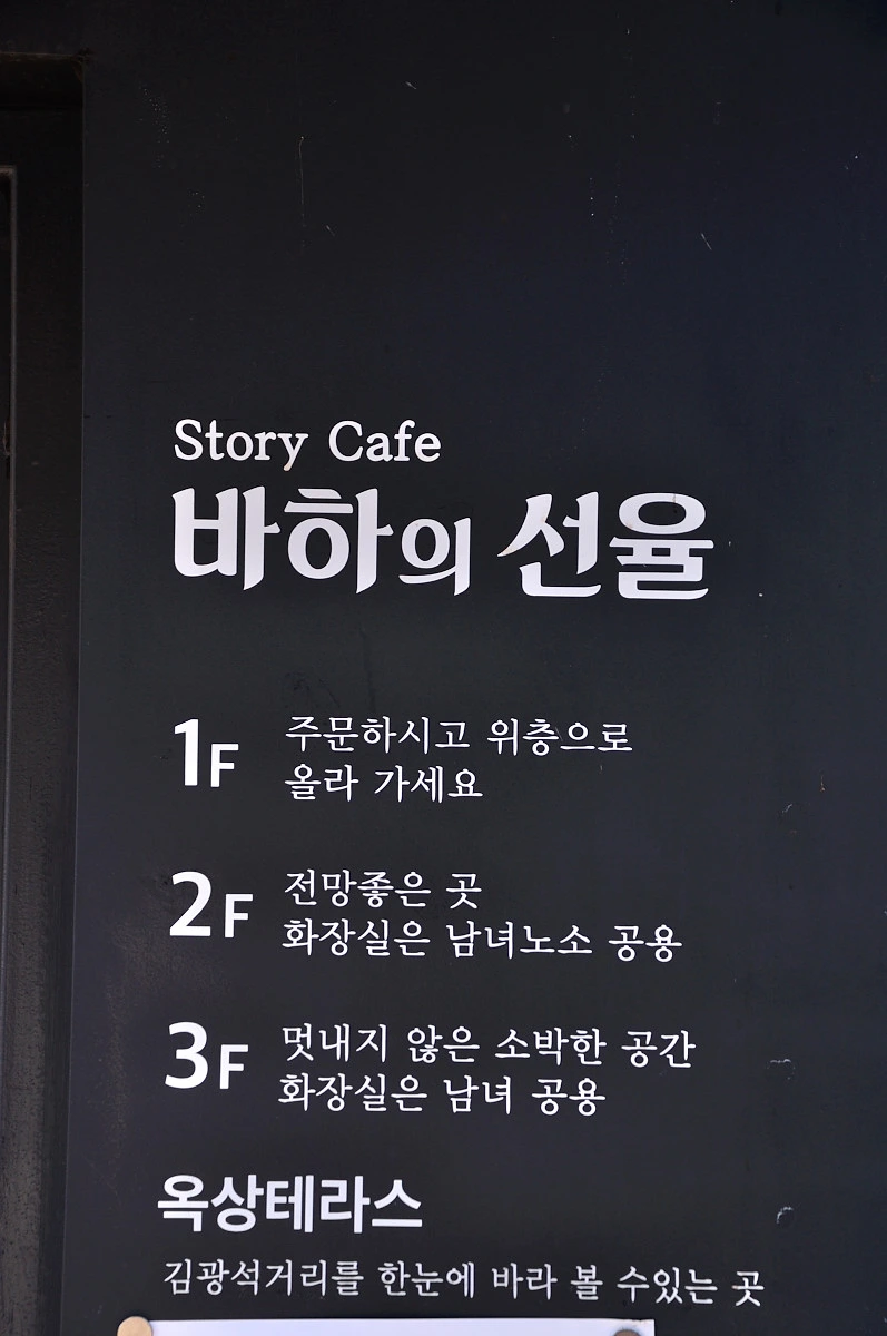 골목 중간에 있는 카페이름이 '바하의 선율'이다. 내가 노래방에서 자주 불렀던 '먼지가되어'라는 노래의 첫 구절이기도 하다. 어느 이야기가 존재하는지 들어가 보지 못했지만 이름만으로도 김광석님과 닮은 주인이 커피를 내어줄것만 같다.