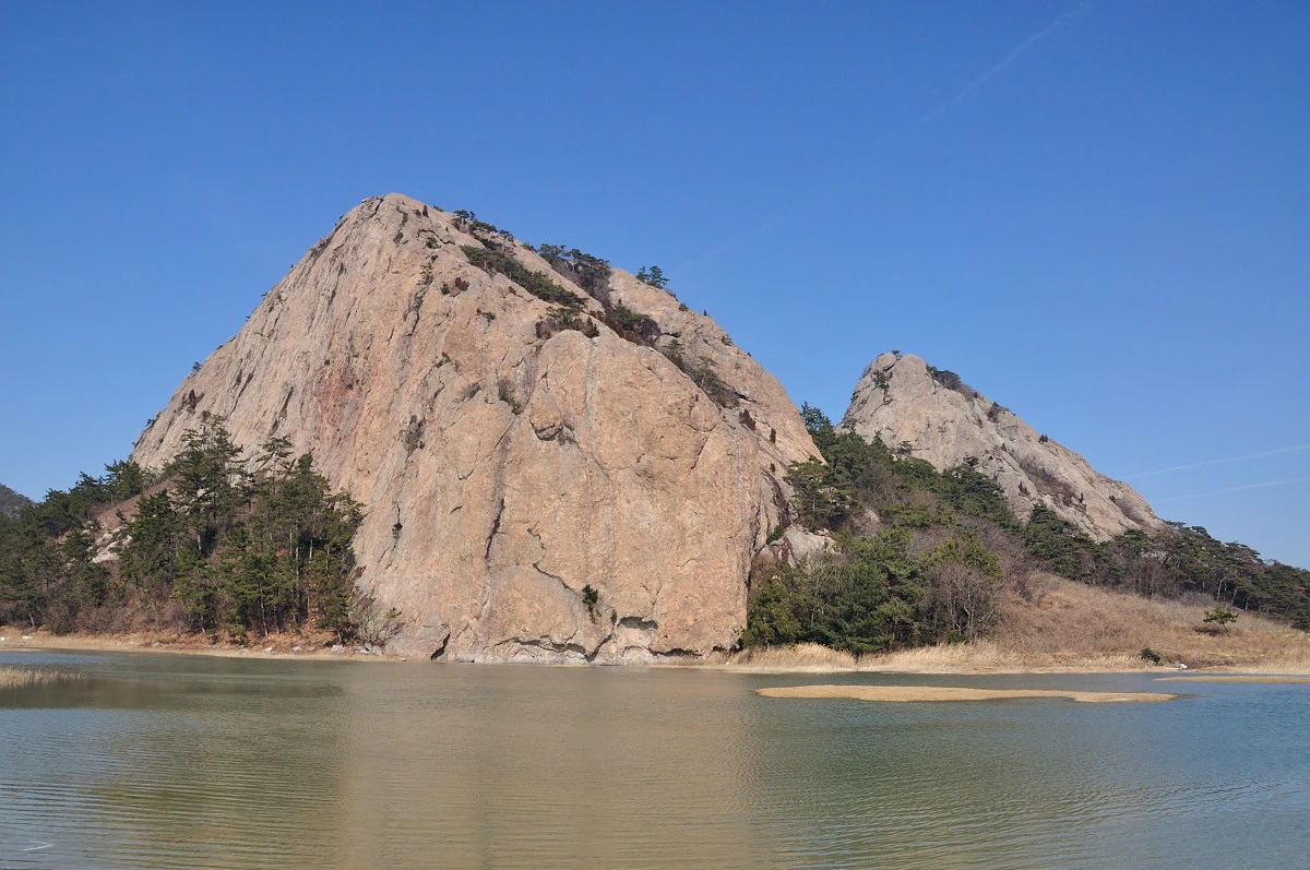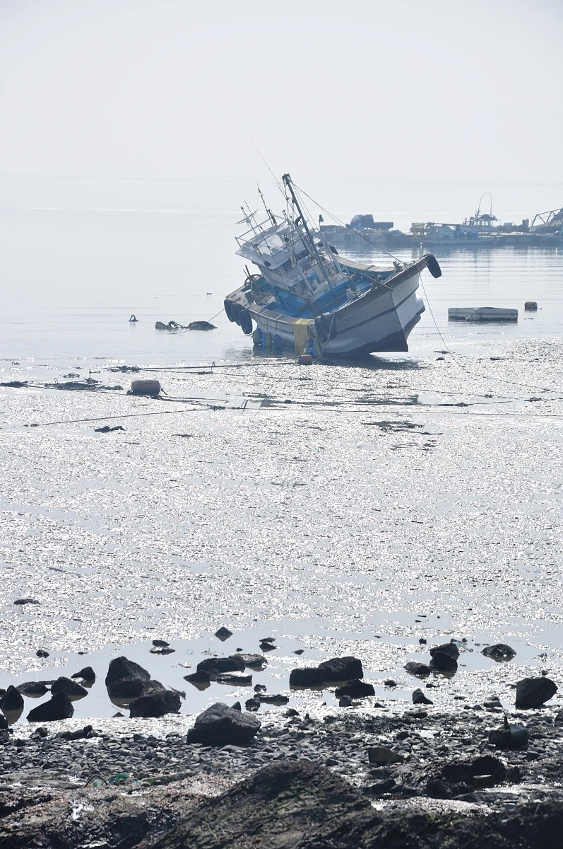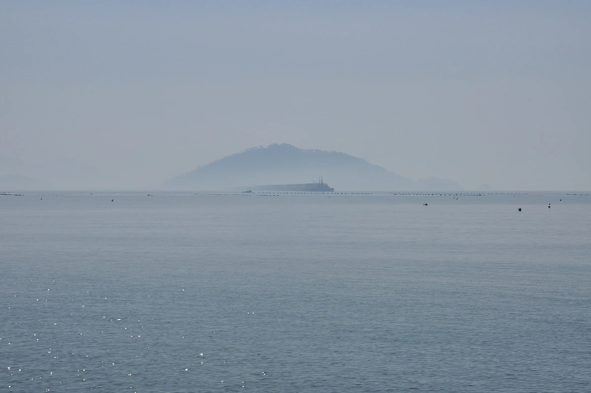 저멀리 해무에 가려 살짝 봉우리만 보이는 섬은 높은 산처럼 보인다.