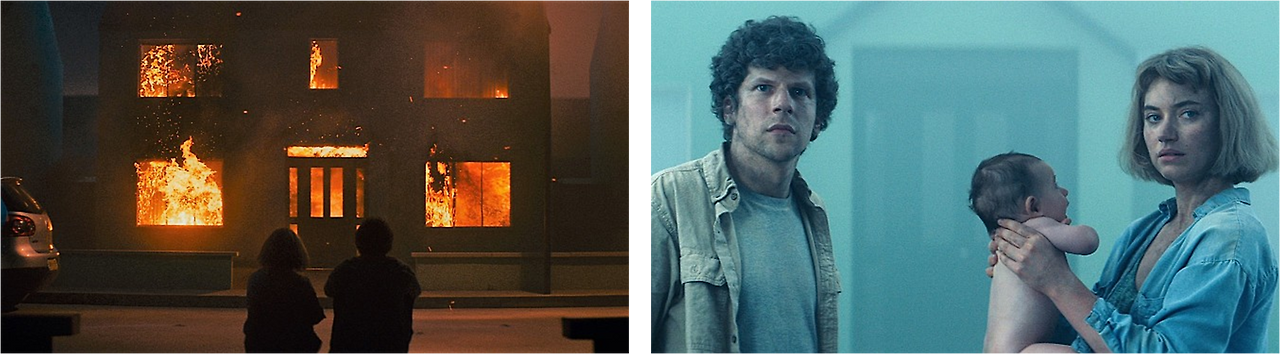 <비바리움>은 자본주의 시장 안에서 개성을 잃어가는 현대인의 무기력증을 직접적으로 비유한 우화로 보인다. 욘더의 획일화된 주택 단지 풍경은 현대의 공동 주택의 모습과 별반 다르지 않다. 사실 익숙한 풍경이다. 욘더에 들어가는 순간부터 정해진 위치에서 임무를 수행하는 것 외에는 어떠한 가치도 존재하지 않는다. 하늘의 구름까지 모든 것이 가짜인 욘더의 모습은 자연을 지워내며 기계적으로 변해 가는 현대의 풍경을 풍자한다. 욘더 안에서 무기력하게 당하기만 하는 인물들은 개성을 잃어가는 현 세태의 모습과 겹쳐보인다. 욘더를 보며 우리가 느끼는 기시감은 아마도 로칸 피네건 감독이 현 세태를 바라보는 비판적 시선에서 기인한 것일 테다.그런 의미에서 <비바리움>은 모든 것이 일률화 되어가는 현재를 경계하지 않는다면 우리 모두가 톰과 젬마처럼 될 수 있다는 감독의 섬뜩한 경고처럼 느껴진다.