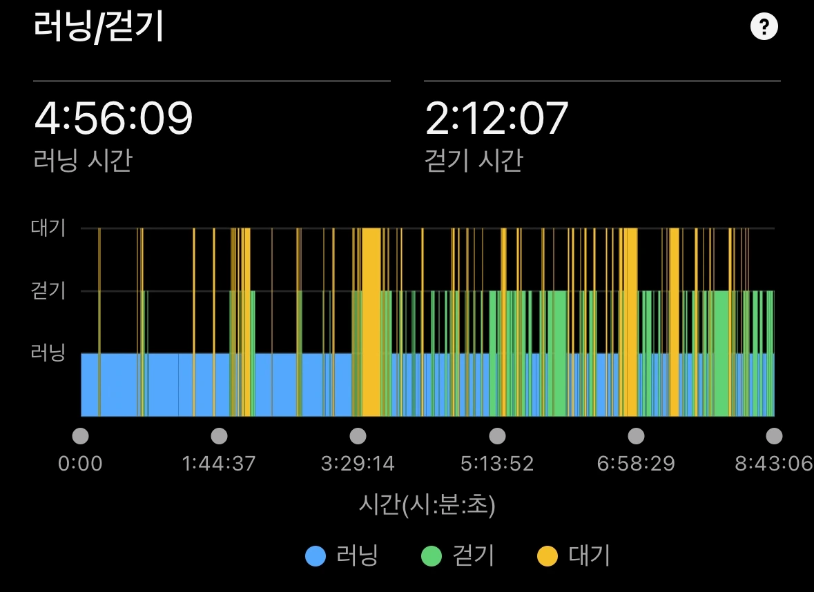 후반전에 이 도전에 대한 의미를 많이 생각했다. 사실 남들과 함께 풀코스 서브 330 (3시간 30분 이내 풀코스 완주) 이런 도전을 피했다. 각자 자신과의 경주라고 하지만, 암목적으로 기록으로 인한 경쟁에서 벗어나고 싶었다. 남들과 경쟁하지 않고 나와의 경쟁을 해보고 싶었다. 그건 남들이 하지 않았고, 내가 가진 최장거리를 넘어보고 싶다!라는 생각으로 시작되었다!