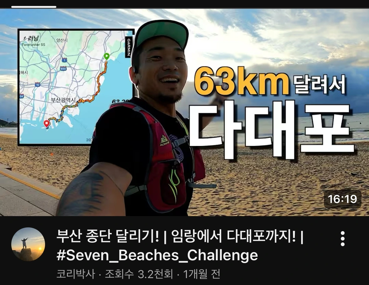 오랜 기간 꿈꾸고 하고 싶었던 도전을 드디어 성공했다. 부산의 7개 주요 해수욕장을 두 발로 뛰어가는 것!! 쉽지 않았던 과정인 만큼 많은 심경변화와 깨달음이 있었던, 자아성찰의 시간이었다!!