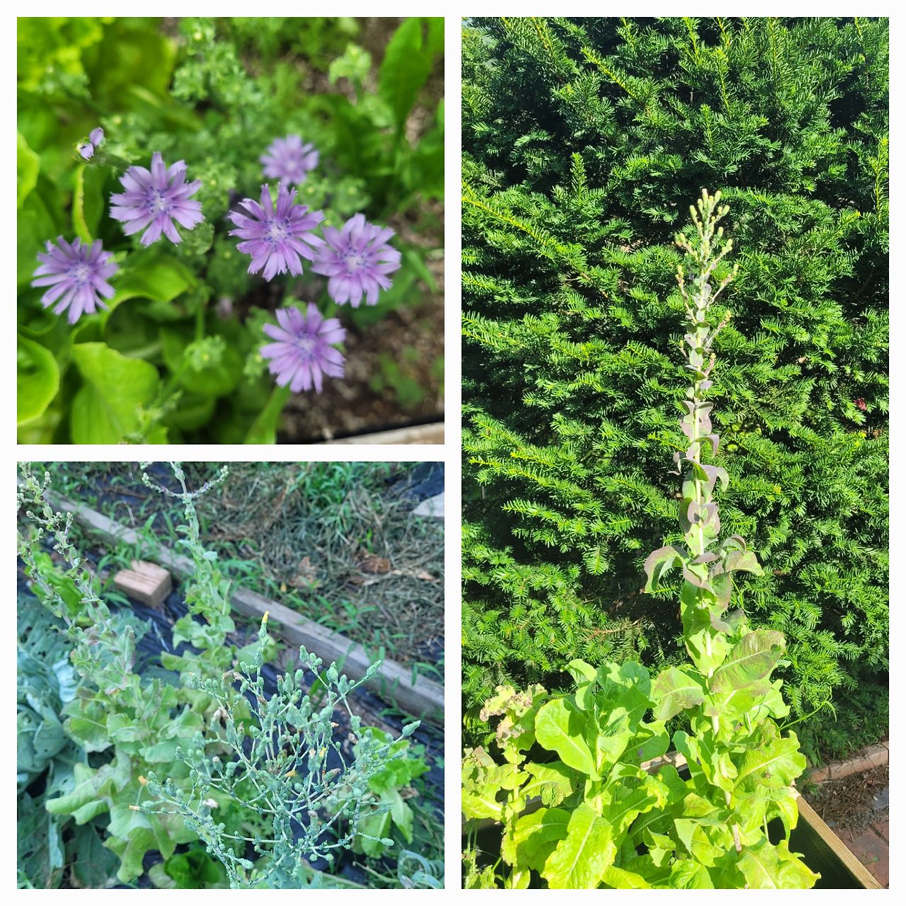상추는 노란 꽃을 피우고 그 옆에서 자라는 치커리는 보랏빛 꽃을, 고수는 흰 꽃을 피웁니다. 먹을 것이라는 콩깍지가 씌어서 그렇지, 꽃밭에서 만났으면 몰라봤을 겁니다. 보통은 꽃 피고 열매 맺는 시기를 식물의 가장 활동적인 절정기라고 여기잖아요? 그런데 꽃핀 상추는 한물간 채소입니다.