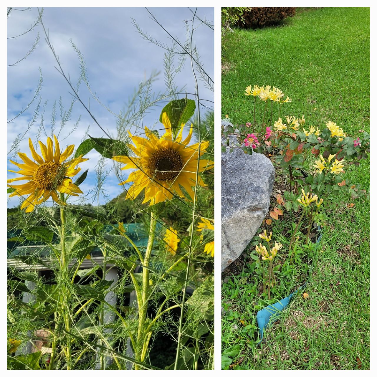 마침 같은 날에 해바라기와 상사화가 얼굴을 내밀었습니다. 꽃말은 짝사랑, 이룰 수 없는 사랑이죠. 바라보고 생각만 해선 이룰 수 있는 게 없습니다. 때로는 무작정 실천하는 게 답이 될 수 있죠. 아무리 이해하고 준비한다고 한들, 세상엔 직접 해 보기 전엔 절대로 알 수 없는 일투성이니까요.