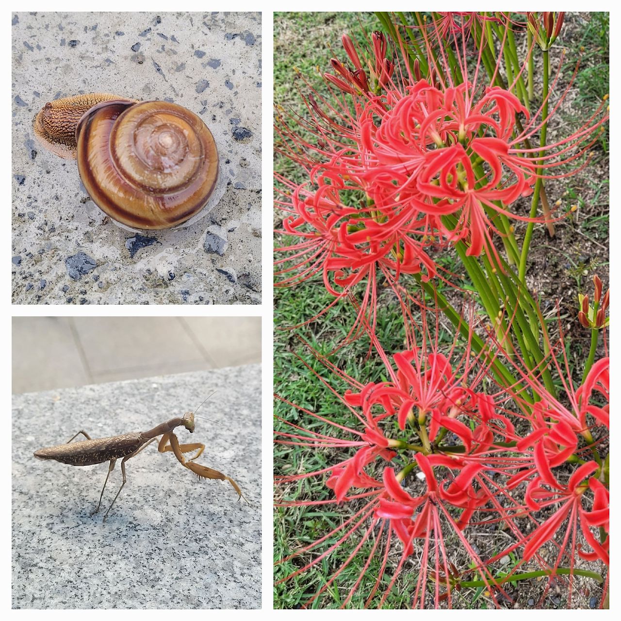 마당을 한 바퀴 돌다가 시멘트 바닥에서 커다란 달팽이와 마주쳤습니다. 언젠가 모르고 밟은 적이 있었는데, 그날은 하루 종일 맘이 찝찝했죠. 화단에 옮겨주려고 보니, 거기에도 다른 녀석이 가을비 샤워 중이네요. 어디서 기어와 여기까지 온 건지, 언제 몸집이 이리 커졌는지, 보이지 않는 시간이 궁금해집니다. 동양달팽이는 우리나라에 자생하는 육상패류 중 가장 크다고 하네요. 빙글빙글 돌아가는 달팽이집을 보고 있자니 이 뜰이 마치 깊은 숲 속인 듯 느껴집니다. 쏟아지는 빗줄기가 여름과의 결별을 알리고, 꽃무릇은 폭죽을 터뜨려 축하하는데, 흔치 않은 생명들이 정원을 즐기니 기분 좋은 시간입니다.