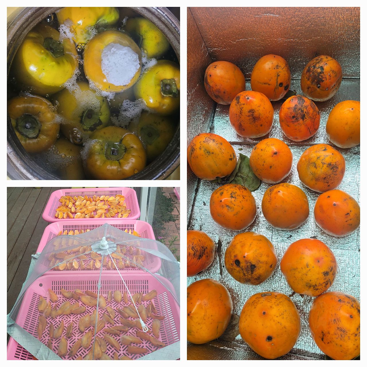 쉬운 게 없네요. 입에 들어오기 전까지의 과정이 말이죠. 많은 분들의 수고로움을 직접 해보고야 깨닫습니다. 예전엔 생활이 처음부터 끝까지의 과정을 익히는 것이었지만, 지금은 돈이 그 과정을 수없이 난도질해 놓았습니다. 때문에 서로를 이해하지 못하고 알지 못하면서 넘겨짚다가 싸움이 늘어가는 듯합니다. 그걸 이용하는 비루한 사람도 많아지고요. 천감만려(千感萬慮), 감을 손질하다 보니 만감이 교차하네요.