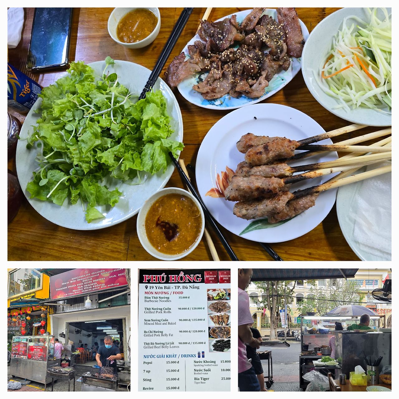 목구멍이 간질간질하더니 하루 지나 뻑뻑해지고, 콧물이 맺히더니 이내 주르륵 흘러내렸다. "아, 오뉴월 날씨에 감기라니." 기침이 잦아지고 미열이 찾아와 속상하다. 선뜩한 에어컨 바람 때문일까? 아픔만큼 실감 나고 온 마음을 사로잡는 것도 없다. 내 상태에만 초점이 맞춰져 시야는 좁아지고, 얇아진 감정의 막이 낭창낭창 흔들린다. 있는 약을 몽땅 털어 넣고 잘 먹어 이겨내기 위해 Quán Phù Hồng을 찾았다. Quán(館)은 집, 주인장의 이름을 걸고 영업하는 2024-2025 미슐랭가이드 선정 음식점이다. 우리나라에선 훈장처럼 여기는 미슐랭들을 다낭 길거리에선 타이어 가게처럼 쉽게 만날 수 있다. 우리가 선택한 항바이러스 메뉴는 thịt nướng(불고기)과 nem nướng(다짐육 꼬치구이). 코를 훌쩍거리면서도 맛있게 먹었는데, 효과는 글쎄다. 기어코 이 눔이 아내에게로 옮아갔다.