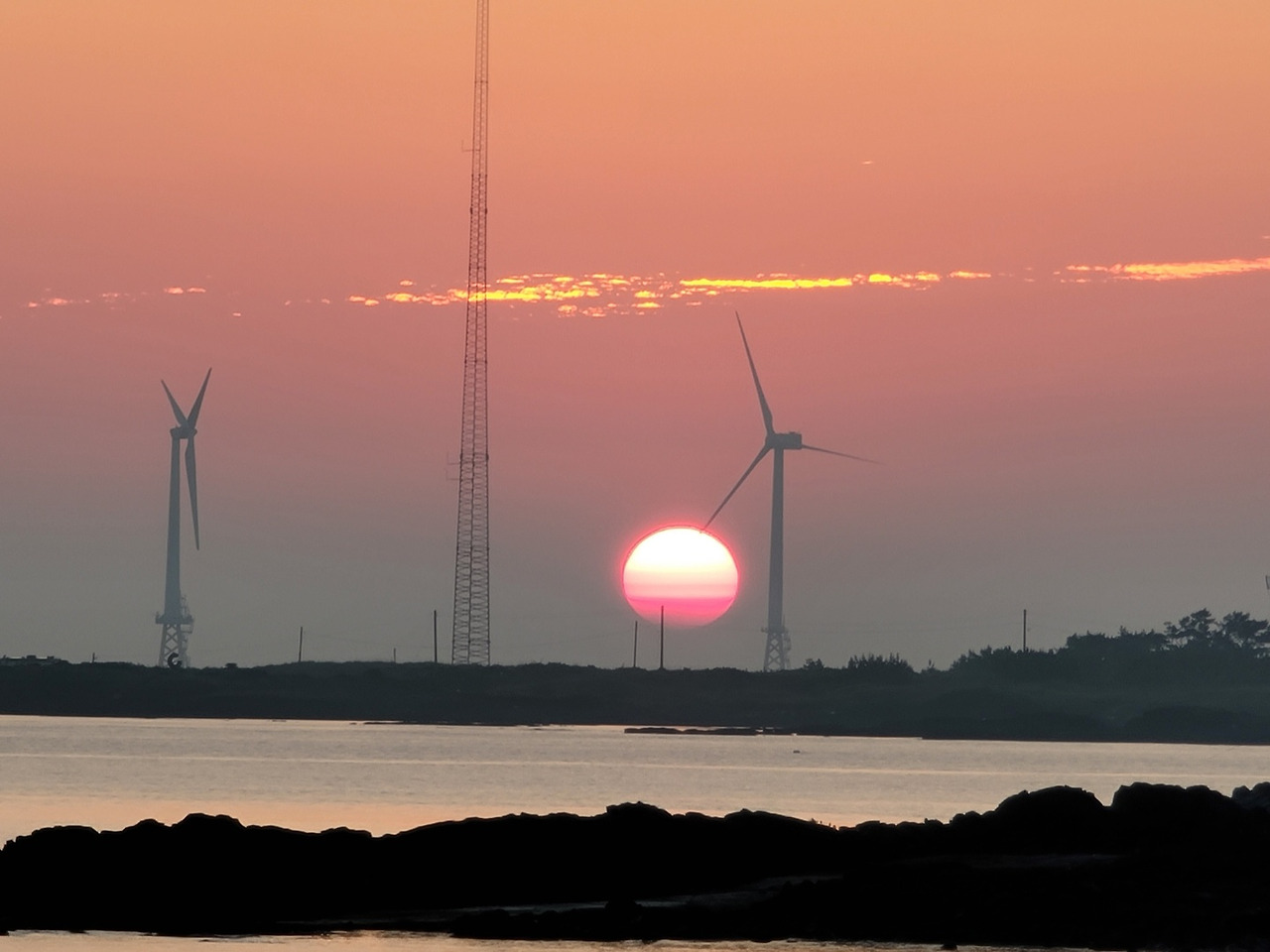 일출을 찍은 사진 속에는 인공의 흔적이 끼었다.