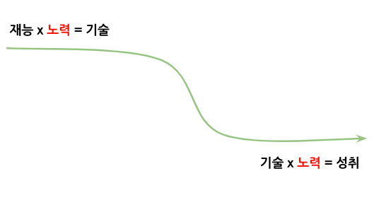 재능은 노력을 기울일 때 기술이 향상되는 속도다. 재능이 뛰어난 사람, 예를 들어 IQ가 높은 사람은 같은 지식을 배우더라도 남들보다 빠른 속도로 그것을 습득한다. 하지만 뛰어난 기술은 상당한 노력 없이 이루어지지 않는다. 성취는 습득한 기술을 사용할 때의 결과물이다. 여기서도 기술을 꾸준히 발전시키는 노력이 없다면 성취는 빈곤해진다. 그러므로 노력은 두 공식의 강력한 매개변인으로 작동한다. 배우는 속도가 느리더라도 열정을 가지고 꾸준히 노력한다면 그에 걸맞은 성취를 달성할 수 있다. 어릴 적에 읽은 토끼와 거북이 우화가 주는 교훈과 일맥상통하고 있다.