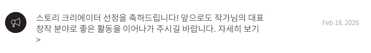그러던 2월 18일, 정확히 언제 던져두었는지도 잊어버린 낚싯대에 작은 입질이 왔다. 무심코 바라본 브런치 앱에 알림이 하나 떠 있었다. '크리에이터 선정을 축하드립니다!' 그리고 그 앞에는 '인문교양'이라는, 내게는 제법 무겁고도 정갈한 수식어가 붙어 있었다. '오... 드디어.' 나는 짧게 탄성을 뱉었다. 그것은 아주 오랫동안 잊고 지내던 겨울 코트 주머니에서 예전에 넣어둔 지폐를 발견했을 때처럼, 포기했던 선물을 아주 뒤늦게 배송받은 듯한 기분이었다.