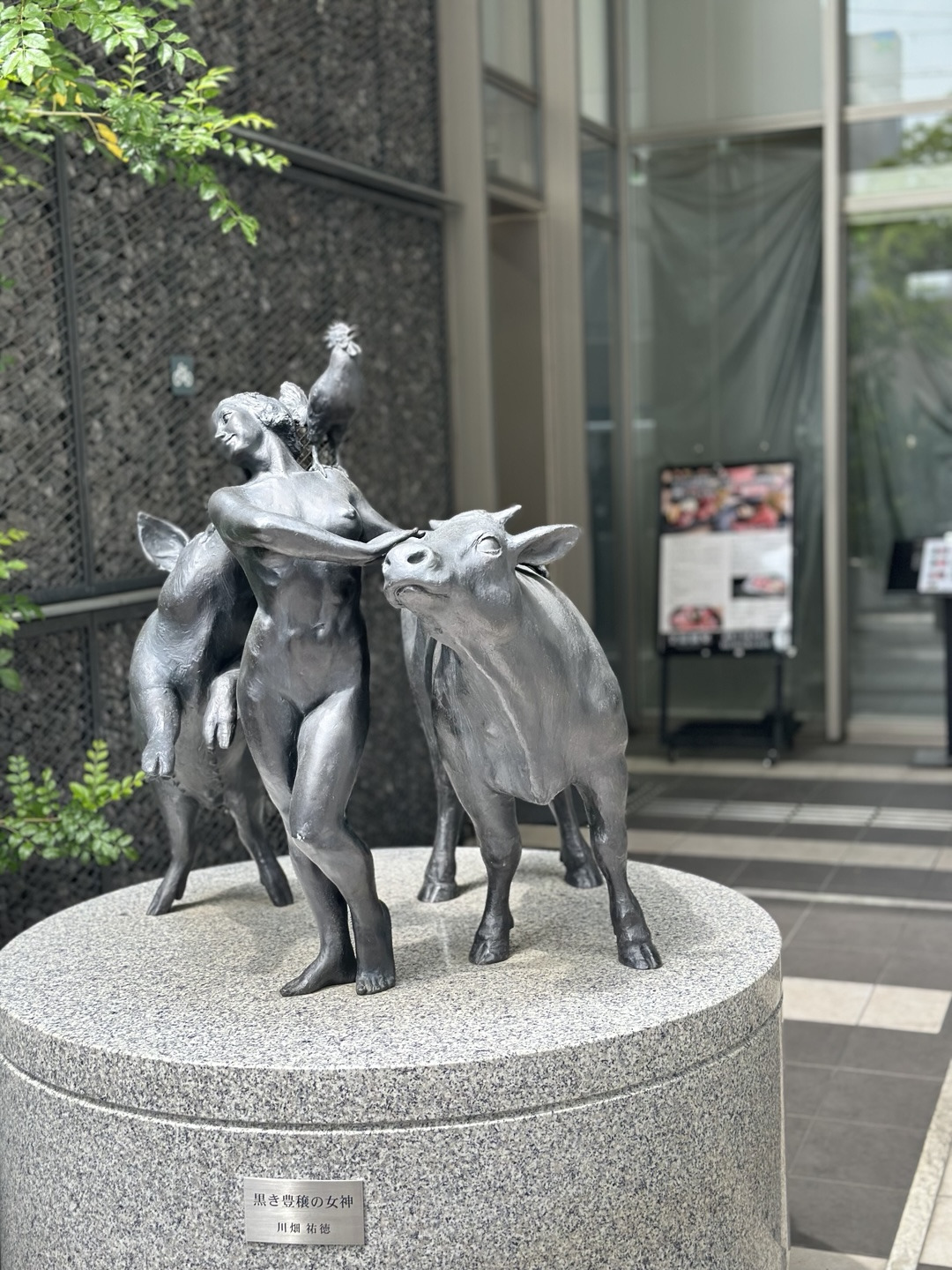 와규 전문점 앞 조각. 소고기를 파는 식당 앞 장식이 이렇게 고급스러울 일이냐며..