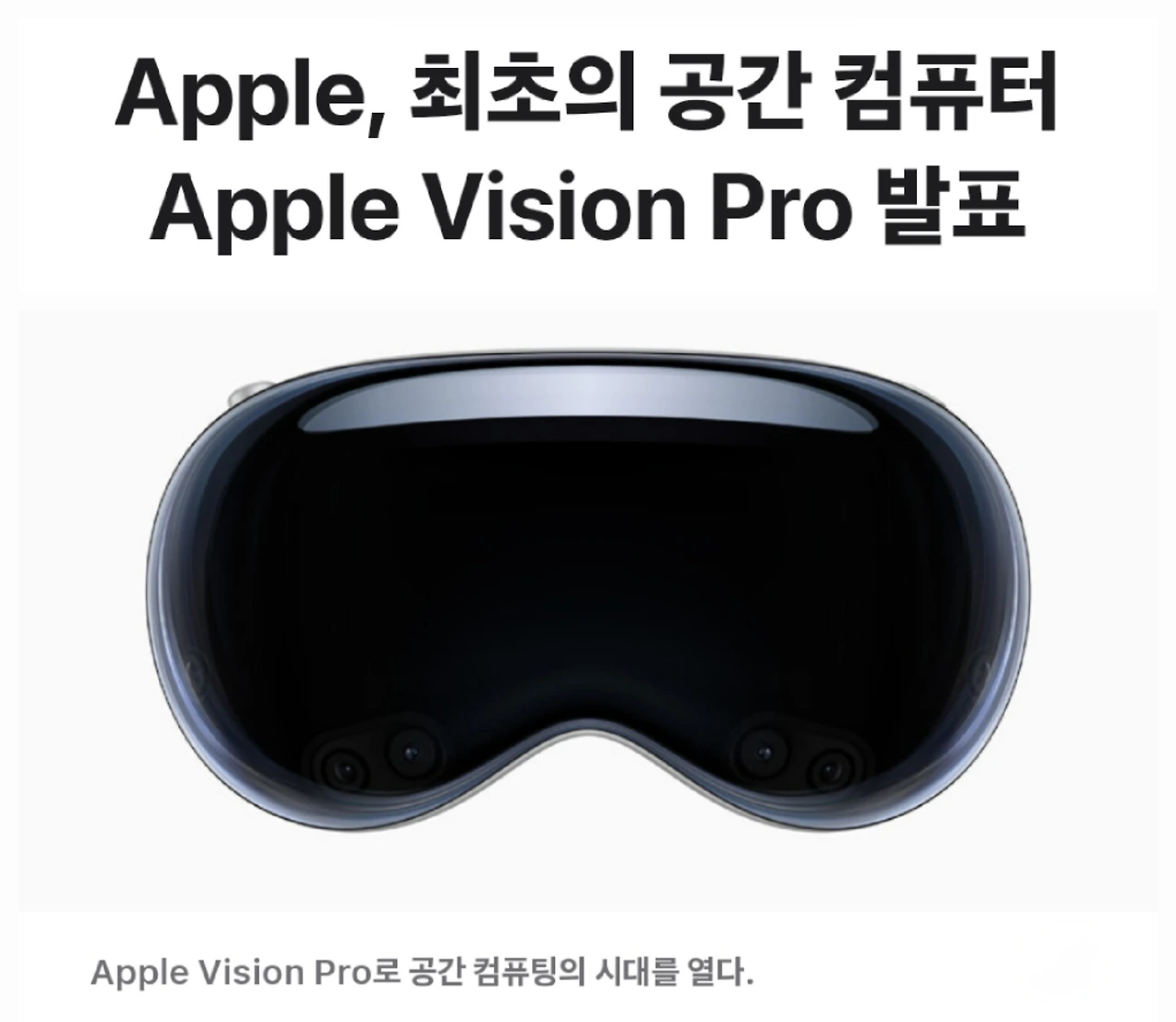 이에 반해 CES에 불참한 애플은 CES 개막 하루 전 “2월 2일 MR(혼합현실) 헤드셋 ‘비전 프로’를 공개할 예정”이라고 발표하였다. CES에 집중된 언론의 관심을 자사로 돌리면서 이슈를 끌어보려는 언론플레이였다. 8K 초고해상도 디스플레이가 탑재될 것으로 알려진 비전 프로에 대해 애플은 “혁신적이고 마법 같은 사용자 인터페이스를 제공할 것”이라고 밝히고 있다. 애플의 팀 쿡 CEO는 “(가상과 현실을 오갈 수 있는) 공간형 컴퓨터의 시대가 도래했다”고 선언하였다.