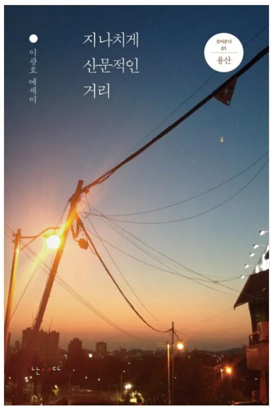 《지나치게 산문적인 거리》는 문학동네의 임프린트 난다에서 ‘걸어본다’ 라는 제목으로 기획한, 작가들의 동네 탐방기 중 그 첫 번째 권이라고 할 수 있겠다. 그리고 이 가벼운 유용함의 갑옷을 - 가벼움과 갑옷이라는 이율배반의 표현 방식을 용서하시라, 이웃 동네를 산책하는 듯한 가벼움과 그 와중에 맞닥뜨리는 시간의 속살을 동시에 보여주고 있음을 확인할 수 있으리라 - 두른 시리즈물의 첫 번째 주자는 평론가 이광호이다. (책의 뒷날개를 살피니 이후에 강석경의 경주, 허수경의 뮌스터, 강병융의 류블라나, 황현산의 비금도, 이홍섭의 강릉, 장석남의 덕적도, 김유지의 자양동, 최갑수의 파주, 김경의 바르셀로나 등이 추진되고 있음을 알 수 있다.)