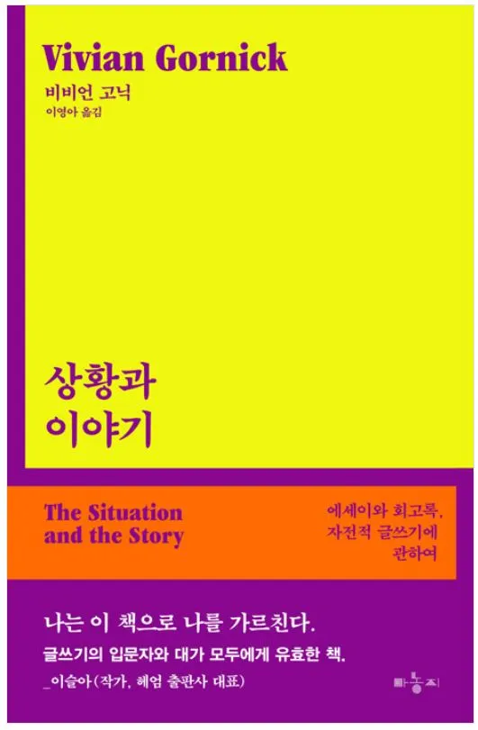 비비언 고닉 Vivian Gornick / 상황과 이야기: 에세이와 회고록, 자전적 글쓰기에 관하여 (The Situation and the story) / 마농지 / 197쪽 / 2023 (2001)