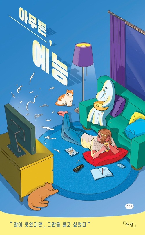 ’예능‘이라는 주제를 갖고 컴팩트 한 책을 한 권 써낸 작가는 ’복길‘이라는 네임을 쓰는 헤비 트위터리안이다. 어느 해인가 문제점 투성이인 대종상을 트윗으로 중계하면서 널리 알려졌다는데 스피디하면서 반전을 꾀하는 위와 같은 문장을 보면 그럴 만도 하다고 여겨진다. 자신의 일상사를 주저리주저리 늘어놓다가 은근슬쩍 우리가 익히 알고 있는 예능 프로그램에 대한 이야기로 스리슬쩍 넘어가곤 한다.