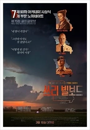 쓰리 빌보드 (Three Billboards Outside Ebbing, Missouri) / 마틴 맥도나 감독 / 프란시스 맥도맨드, 우디 해럴슨, 샘 록웰 외 출연 / 115분 / 2018 (2017)