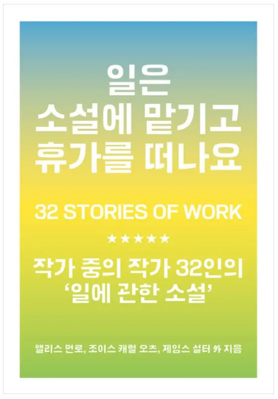 앨리스 먼로, 조이스 캐럴 오츠, 제임스 설터 외 / 강경이, 강주헌, 이재경, 하윤숙 역 / 일은 소설에 맡기고 휴가를 떠나요 (32 Stories of Work) / 홍시 / 754쪽 / 2015 (2011)
