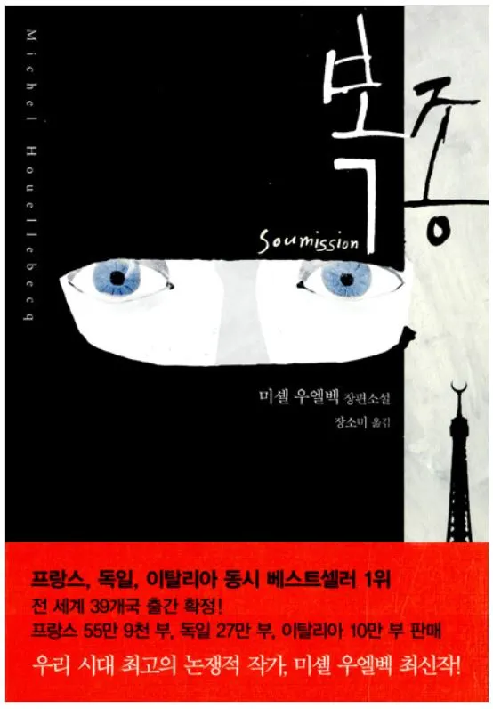 ps. 소설을 읽으면서 유럽의 반인종주의에 대한 생각을 다시 하게 되었다. 유럽의 여러 나라들이 갖고 있는 식민지의 종주국이라는 원죄의식 그리고 제2차 세계대전의 나치 경험으로 생긴 트라우마는 현대 유럽의 지식인들로 하여금 다른 무엇보다 인종주의에 반대하는 경향을 갖도록 만들었다. 하지만 이러한 반인종주의가 다른 모든 사회적 이슈를 덮어버릴 때 생기는 왜곡된 경향을 우려하는 지식인들 또한 점차 늘어만 가는 것 같다. 얼마전 읽었던 영국의 사회상을 다룬 《챠브》에서도 이와 비슷한 것을 느꼈는데, 이번 우엘벡의 소설을 읽으면서도 바로 그러한 지식인을 발견하였다. 하지만 일단 우리와는 거리가 있는 이야기이다. 그들이 미래 출현형 디스토피아를 이야기할 때, 우리는 조지 오웰의 ‘빅 브라더’를 모셔야 하는 과거 지향형 디스토피아를 닮아 가고 있으니 말이다.