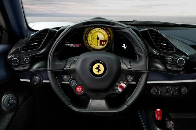 수퍼카 범주의 페라리 스티어링 휠은 명성만큼이나 화려함을 자랑한다. 엄청나게 빠른 속도를 감당하기 위해서는 그만큼 운전자의 집중력도 최고로 요구된다. 때문에 잠시라도 한눈 팔면 위험해진다. 이는 시동을 거는 행동부터 시작된다. 페라리는 운전대 좌측 빨간 버튼으로 엔진을 깨운다. 스티어링 휠 잡은 상태에서 손가락으로 방향 지시등을 켤 수도 있다. 클랙슨도 운전대 가운데가 아닌 엄지손가락으로 울릴 수 있다. 주행과 직접 관련된 기능 대부분을 스티어링 휠 안에서 해결할 수 있다.