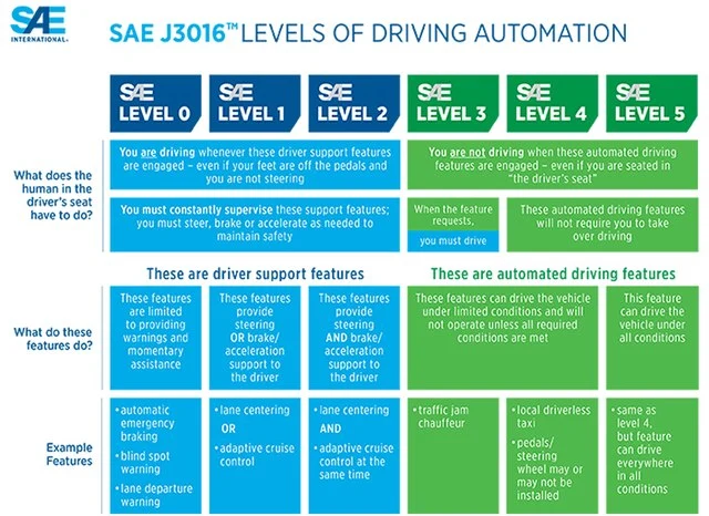 그렇다면 자율주행 레벨2와 레벨3을 분류하는 기준은 무엇일까요? 대표적으로 손꼽을 수 있는 미국자동차공학회(SAE) 기준을 살펴보겠습니다.