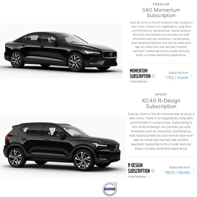 '케어 바이 볼보' 미국 서비스의 경우 최소 2년 단위 멤버십 형태로 진행된다. 차를 선택하면 1년 후 다른 모델로 전환할 수 있다. S60과 XC40의 월간 구독료는 각각 월 75만 원, 80만 원 수준. XC40의 구독 물량이 부족할 정도로 큰 인기를 끌었다. 그러나 지난해 말 캘리포니아 딜러 단체인 CNCDA(California New Car Dealers Association)가 불법적인 마케팅을 펼치고 있다며 청원을 재기한 상태다. 자동차 관리 수수료를 모두 포함한 비용을 받는 형태가 딜러사의 전통적인 판매를 방해하고 있다는 주장이다. 양측은 현재도 의견이 팽팽히 대립 중이다.